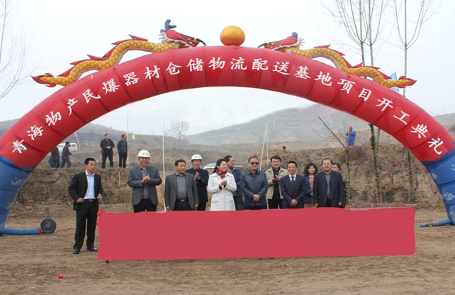 2014年4月11日9時(shí)18分,青海物產(chǎn)民爆器材倉儲(chǔ)物流配送基地項(xiàng)目開工儀式在大通縣長(zhǎng)寧鎮(zhèn)上孫家寨村項(xiàng)目建設(shè)現(xiàn)場(chǎng)舉行。