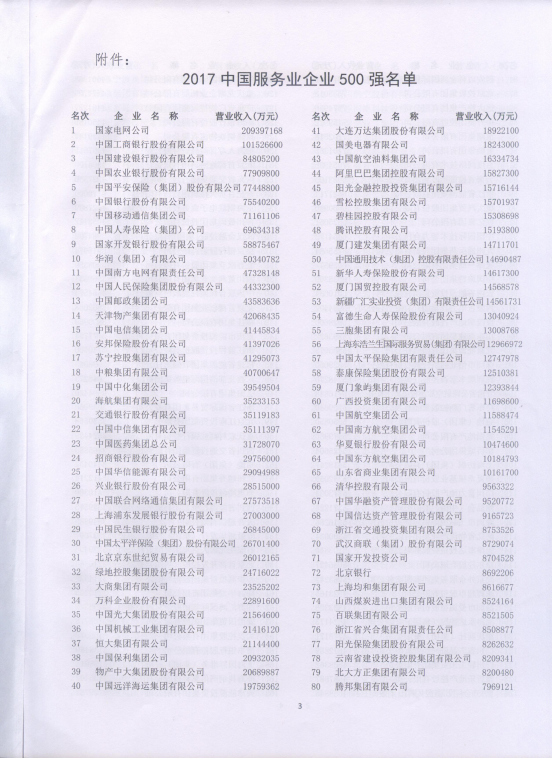 2017年,青海物產(chǎn)在省委、省政府、省國資委的堅(jiān)強(qiáng)領(lǐng)導(dǎo)和親切關(guān)懷下,在省屬相關(guān)委廳局的熱情幫助和大力支持下,牢牢把握"穩(wěn)中求進(jìn)、改革創(chuàng)新、又好又快"的原則,搶抓機(jī)遇,攻堅(jiān)克難,扎實(shí)工作,保持了營收穩(wěn)步增長的良好態(tài)勢,集團(tuán)再次入圍"2017中國服務(wù)業(yè)企業(yè)500強(qiáng)",排名第397位。