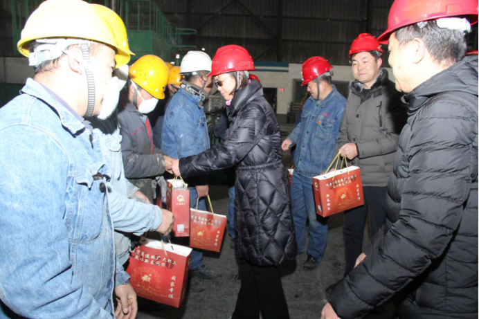 (工投公司訊 陳倫/文?劉燕?李朝暉/攝)"萬家騰笑語、四海慶新春"。在全國喜迎新年的美好時刻,2020年1月24日農(nóng)歷除夕,集團黨委副書記、總經(jīng)理劉玲同志,集團群團工作部負責(zé)人一行,在公司黨政班子的陪同下,深入車間班組,為堅守在生產(chǎn)一線的干部職工送上節(jié)日的問候和精美的慰問品。