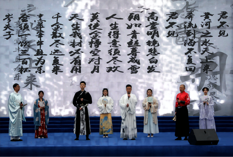 青物書院為搞好此次活動(dòng),確保節(jié)目精益求精,組織集團(tuán)系統(tǒng)職工高凱、郭宇、阿柏林、任蕊、王思涵等8名員工排練了富有特色的詩樂鳴響《將進(jìn)酒》。在演出現(xiàn)場,悠揚(yáng)婉轉(zhuǎn)的古箏配上鏗鏘有力的誦讀,將詩仙李白的傳統(tǒng)經(jīng)典賦予了新的形式,煥發(fā)出新的光彩,將活動(dòng)現(xiàn)場推向了高潮,現(xiàn)場掌聲雷動(dòng),展現(xiàn)出了青海物產(chǎn)集團(tuán)職工奮發(fā)向上的精神風(fēng)貌,塑造了青海物產(chǎn)書香企業(yè)的良好形象。