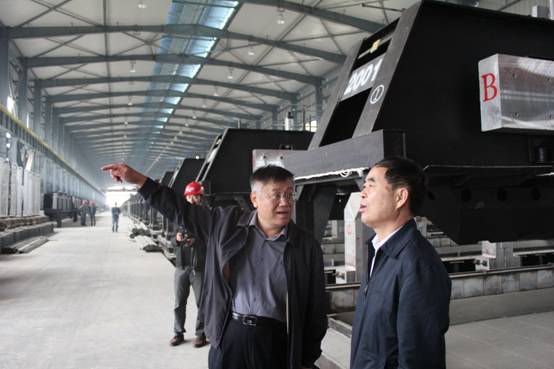 圖一:駱副省長(中)一行在集團王總(右一)等領(lǐng)導(dǎo)的陪同下實地來到生產(chǎn)車間視察