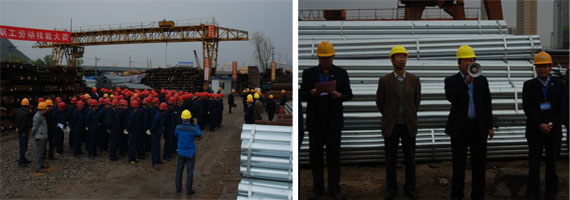 為落實(shí)集團(tuán)總公司《2014年安全生產(chǎn)工作要點(diǎn)》,豐富物產(chǎn)配送公司基層班組建設(shè),促進(jìn)一線職工綜合技能水平提升,以《吊裝作業(yè)規(guī)范手勢》為標(biāo)準(zhǔn),檢驗(yàn)公司一線司吊作業(yè)人員執(zhí)行國家規(guī)范手勢、司吊作業(yè)操作規(guī)程的實(shí)際效果,保證全年安全控制目標(biāo)的實(shí)現(xiàn)。物產(chǎn)配送公司在前期宣傳動(dòng)員、學(xué)習(xí)培訓(xùn)、實(shí)戰(zhàn)演練的基礎(chǔ)上,于2014年5月17日上午,舉行職工勞動(dòng)技能比武大賽。集團(tuán)總公司黨委書記白家林、集團(tuán)黨群工作部部長趙宗青、安全環(huán)保部干事劉軍蒞臨現(xiàn)場指導(dǎo)。