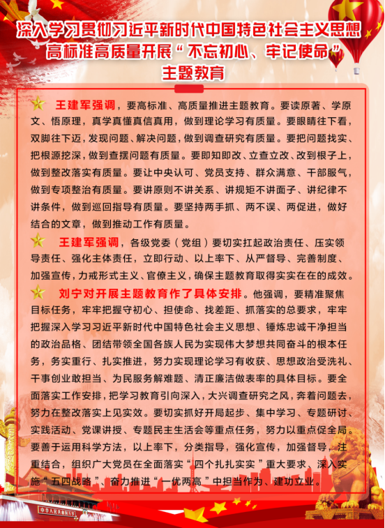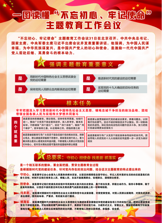 由集團黨委副書記、總經(jīng)理劉玲同志宣讀《集團黨委開展"不忘初心、牢記使命"主題教育實施方案》。集團黨委書記、董事長王玉輝同志作了"不忘初心、牢記使命"主題教育動員講話,對集團系統(tǒng)開展主題教育工作進行了安排部署,要求把主題教育與完成本單位轉型升級、項目建設、生產(chǎn)經(jīng)營等工作任務結合起來,切實把主題教育成果轉化為企業(yè)發(fā)展的強大動力,推動青海物產(chǎn)高質量發(fā)展。省委"不忘初心、牢記使命"主題教育第十二巡回指導組組長任正德同志做了指導講話。充分肯定了集團黨委的前期工作,認為會議準備比較充分,有效統(tǒng)一了干部職工的思想,制定的主題教育《實施方案》操作性強,目標任務具體,動員講話政治站位高,思想認識深,工作思路清晰。同時,結合工作組的職責就落實主題教育各項任務講了六點意見。一是聚焦根本任務;二是把握"十二"字總要求;三是緊扣"五句話"總目標;四是落實"四個貫穿";五是抓實"六項重點"舉措;六是力戒形式主義,嚴禁主題教育走形式、走過場。