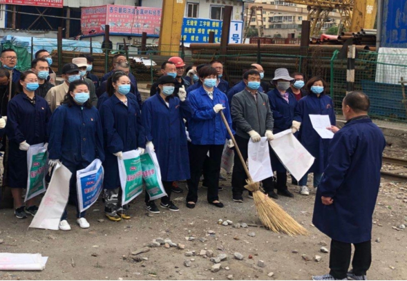 在三名黨支部書記的帶領(lǐng)下,黨員們分工明確、有條不紊,延鐵路專用線由南向北對積存垃圾、建筑垃圾、雜草進(jìn)行清除?;顒又校h員們充分發(fā)揚不怕臟、不怕累的精神,有的掃地、有的撿拾垃圾、有的拔除雜草,呈現(xiàn)出一片熱火朝天的勞動景象。經(jīng)過一個多小時的勞動,鐵路專用線兩側(cè)垃圾得到徹底地清除。