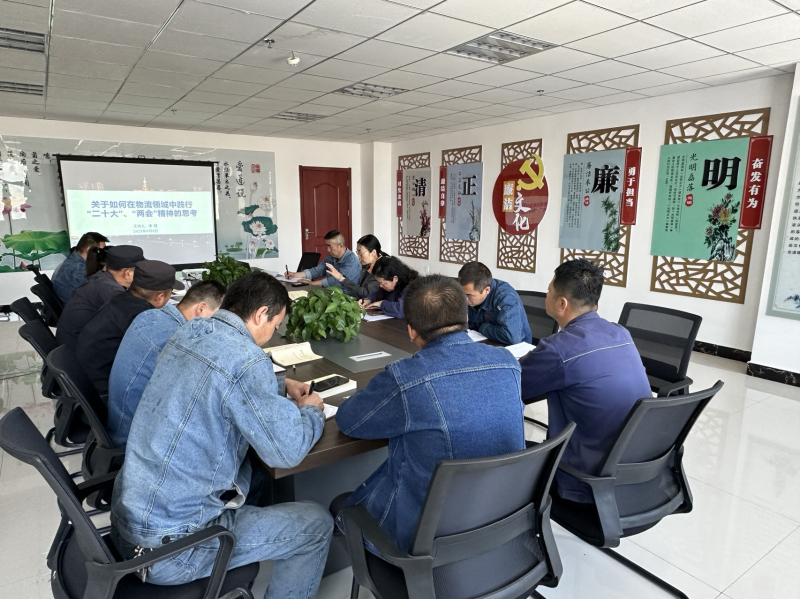 會(huì)上,集團(tuán)黨委委員、副總經(jīng)理秦翡同志以《關(guān)于如何在物流領(lǐng)域中踐行“二十大”“兩會(huì)”精神的思考》為題,從“前言及背景、‘二十大’報(bào)告相關(guān)原文、 2023‘兩會(huì)’政府工作報(bào)告相關(guān)原文、如何理解‘物流’和物流領(lǐng)域的發(fā)展展望”等五大方面為機(jī)關(guān)黨支部全體黨員深入淺出的講解黨的二十大報(bào)告中關(guān)于物流領(lǐng)域發(fā)展的新知識,并詳細(xì)闡述了物流涵義及物流體系發(fā)展歷程,并從“數(shù)字化、智能化、環(huán)保綠色”三個(gè)方面對物流領(lǐng)域做出展望。