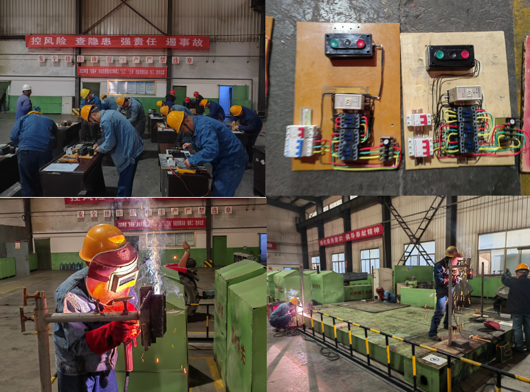 電工競(jìng)賽現(xiàn)場(chǎng),參賽選手面對(duì)繁瑣的配盤(pán)指導(dǎo)圖從容應(yīng)對(duì)。剪線(xiàn)、剝線(xiàn)、壓接……,一招一式都是那么的嫻熟輕快,肅靜的環(huán)節(jié)里沖刺著“濃濃的火藥味”;而維修工比賽現(xiàn)場(chǎng)內(nèi)卻異常熱鬧,新老電工、鉗工圍繞在設(shè)定的操作臺(tái)前,緊鑼密鼓地剪裁組料、焊接配件、清理焊渣、打磨表面,一套動(dòng)作行云流水、一氣呵成。